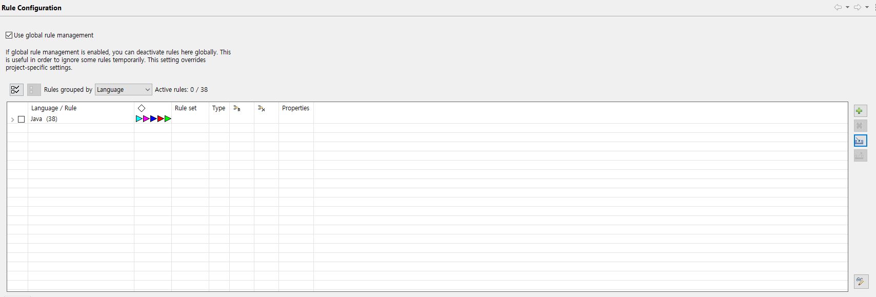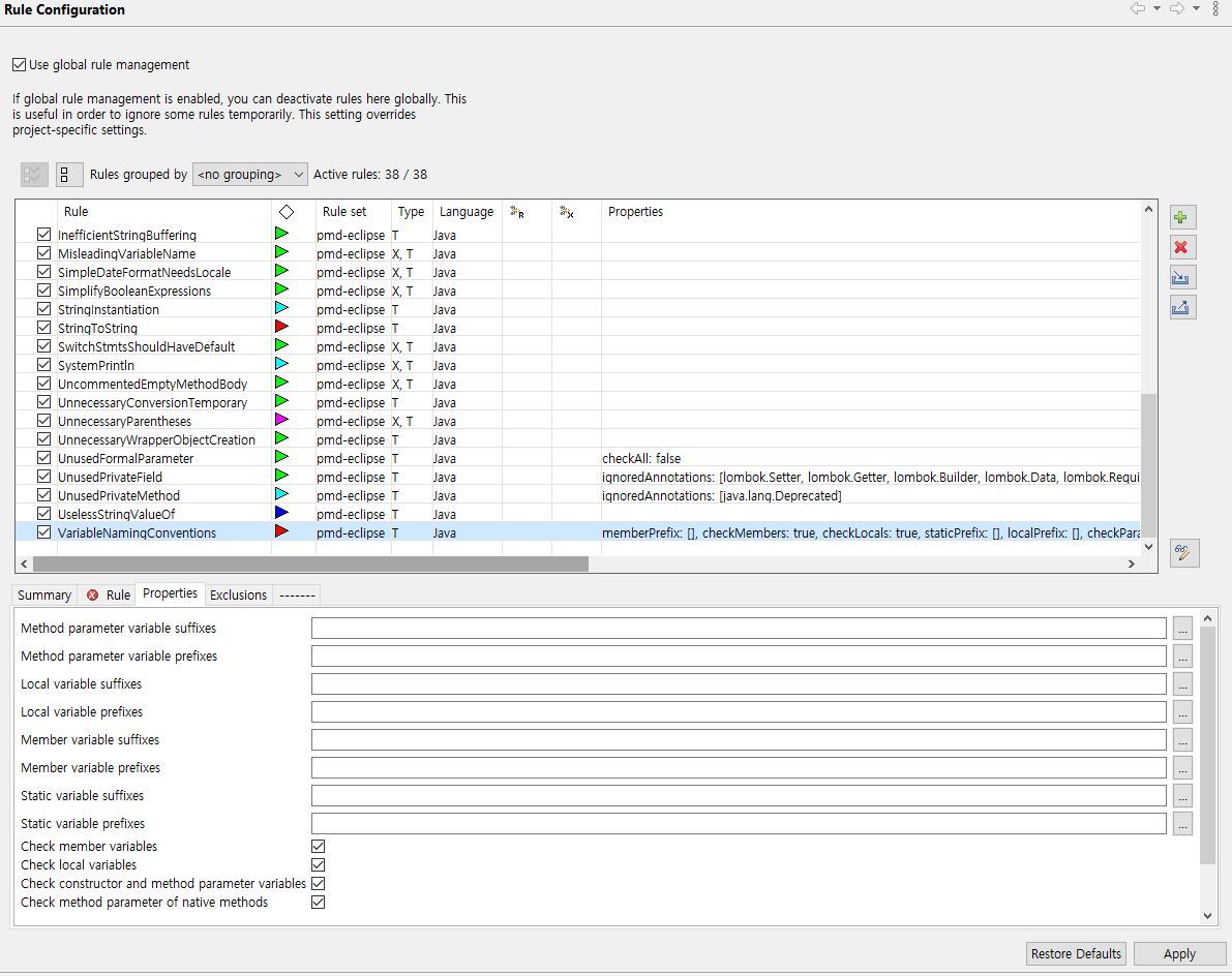PMD -> Rule Configuration에서 Uese global rule management를 체크합니다.
