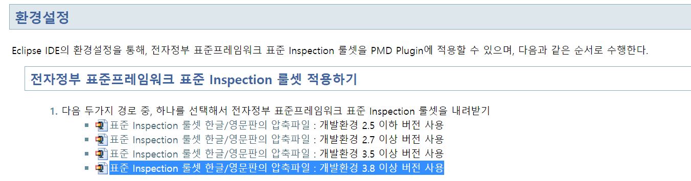 전자정부 표준프레임워크 표준 Inspection 룰셋을 다운합니다.